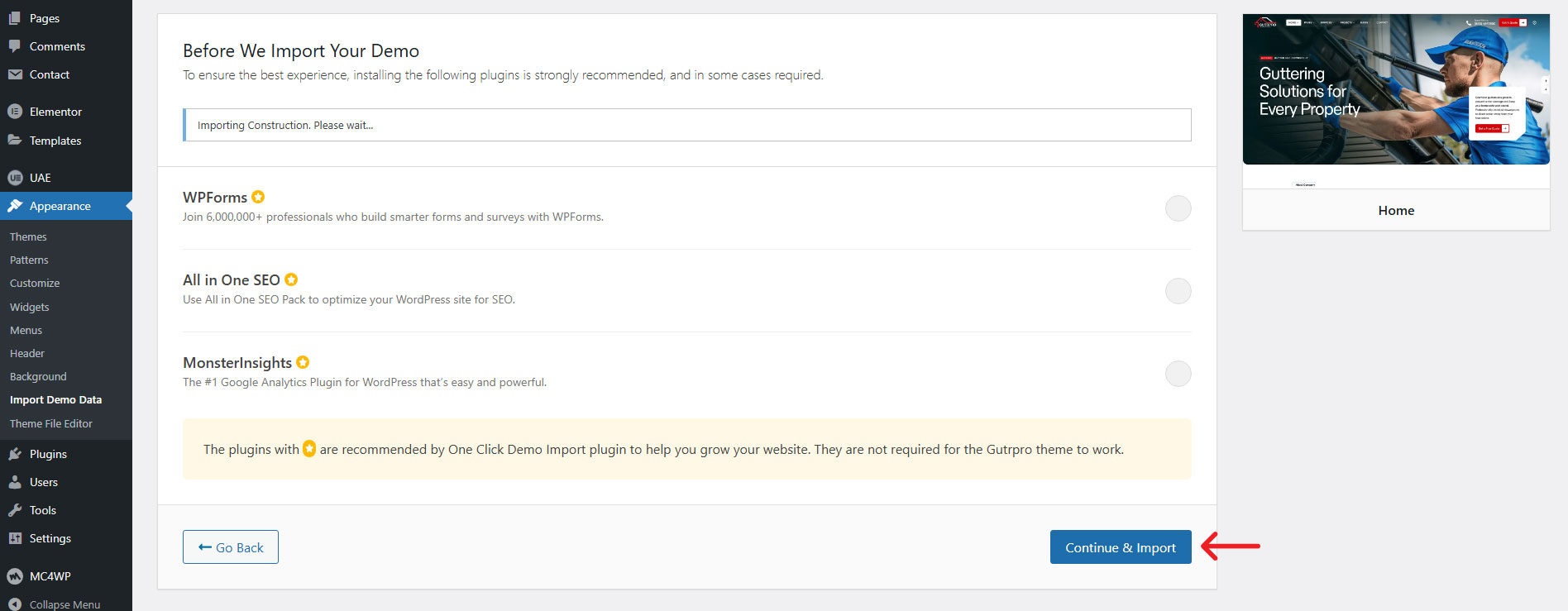 - Now process for the theme setup wizard to install plugins and demo data.