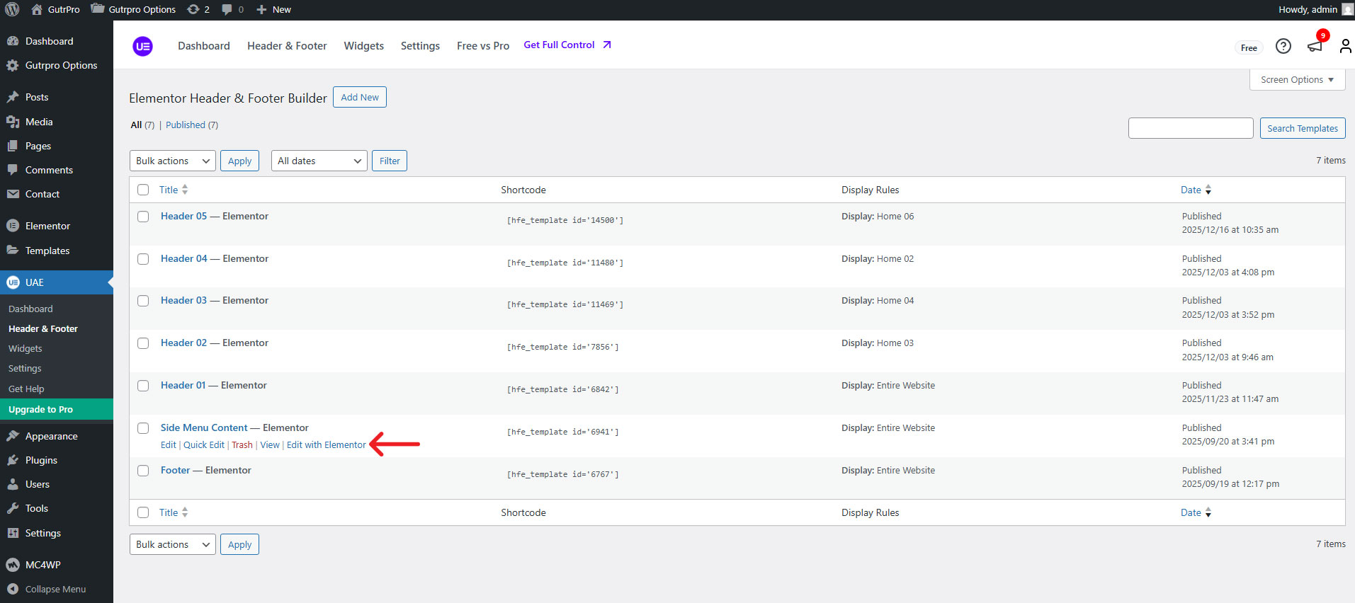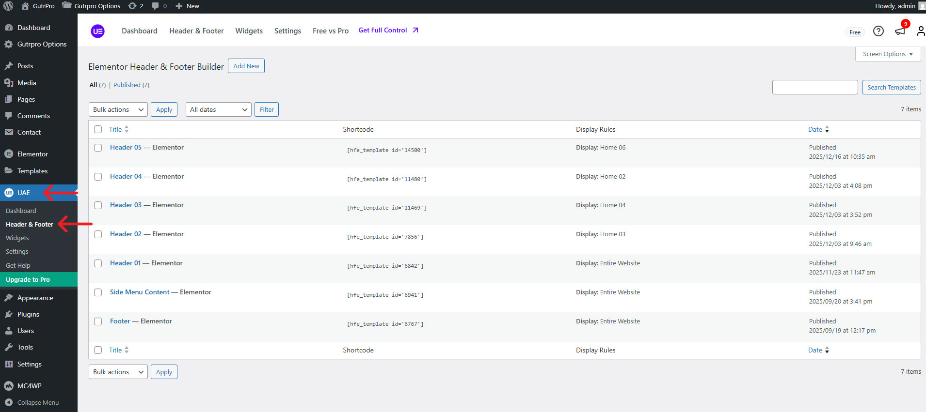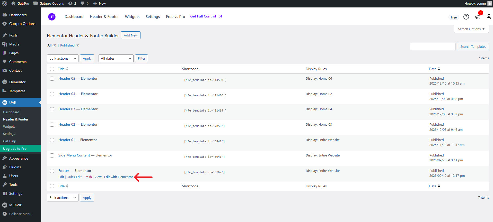 Step 1 - Go to UAE > Header & Footer Builder